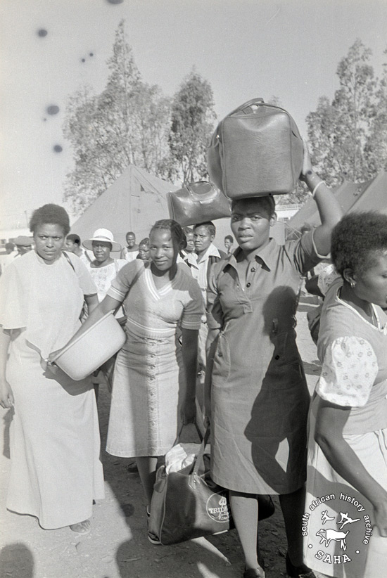 Returnees arriving in Bulawayo with their luggage in 1980 |