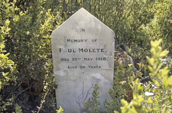This colour photograph of Paul Molete's grave in Mogopa was taken by Gille de Vlieg on 12 December 1983. Included in SAHA Land Act Project report, 2014. |
