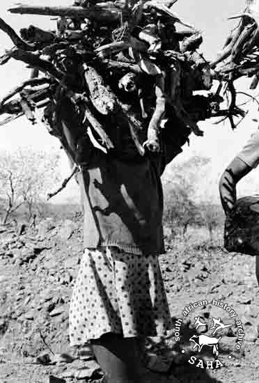A3.2 :: Girls carrying wood, Beestekraal, North West, 1983-08-01.
