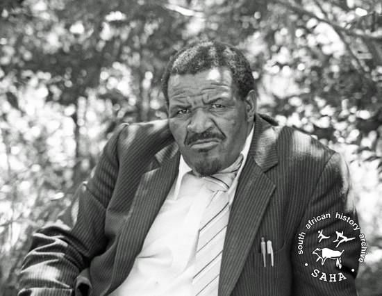 This black and white photograph of Samuel Yende outside the Volksrust court was taken by Gille de Vlieg in 1984. Included in SAHA Land Act Project report, 2014. |