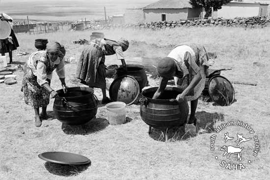 Cleaning the cooking pots, Mathopiestad, North West, 1984-03-09. |