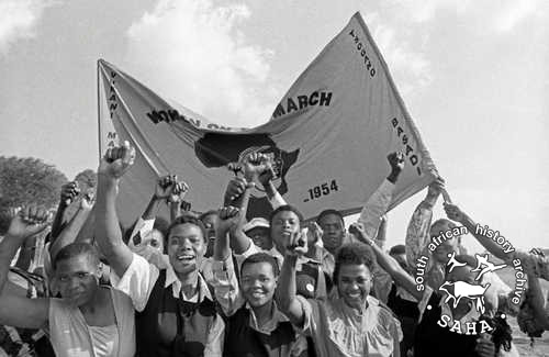 This black and white photograph of women from Tembisa holding a banner at the funeral of Elias Mpanda was taken by Gille de Vlieg on November 3, 1984. Digitised by Gille in 2011, this photograph was on display in the exhibition 'Entering Tembisa - an oral and photographic exploration of the community' in the Tembisa West Library to celebrate Heritage Day on September 24, 2011. This exhibition is part of an oral history and archival collection project on Tembisa, conducted by the South African History Archive (SAHA) in 2010 and 2011. |