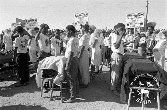 ► C29.6 :: Guards of honour for Matthew Goniwe, Ford Calata, Sicelo Mhlawuli, Cradock, Eastern Cape, 1985-07-19.