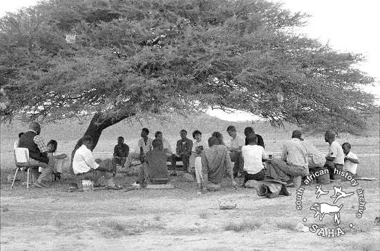 ► F36.12 :: Meeting under tree to discuss possible removal from land, Ntomibi's Camp, KwaZulu-Natal, 1988-11-22.