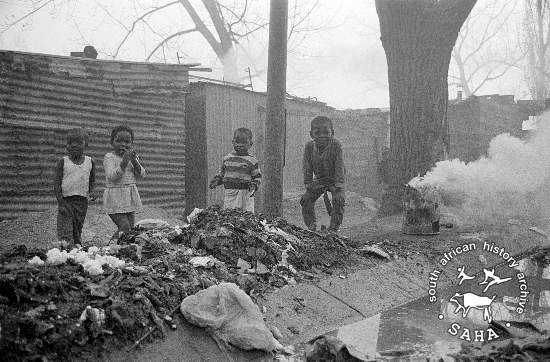 G24.2 :: Children playing around burning rubbish in the street, Soweto, Gauteng, 1989-07-14.