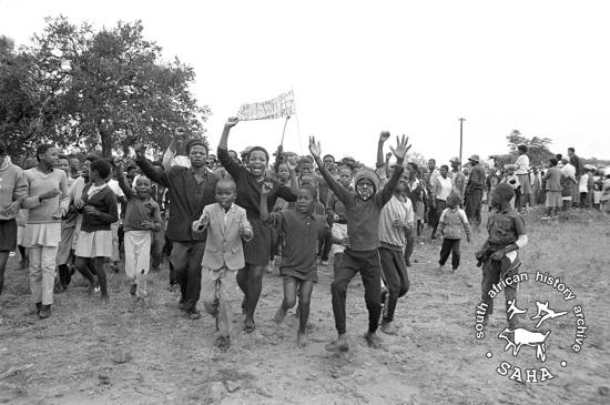 Youth marching through Braklaagte against incorporation into Bophuthatswana |