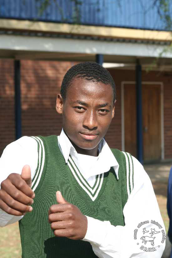 This is a digital colour image of a learner from Khaiso Secondary School in Polokwane during the SAHA/Sunday Times School Oral History Project in 2007.