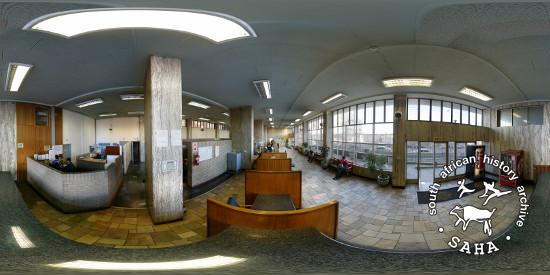 This colour photograph showing a panoramic view of the charge office at the Johannesburg Central Police Station (previously known as John Vorster Square) was taken by Craig Matthew of DOXA for the Sunday Times Heritage Project (STHP) - a joint project between SAHA and the Sunday Times, 2007. Included in "Between Life and Death: Stories from John Vorster Square" - a DVD produced as part of this project, 2007 and the SAHA online exhibition - 'Between Life and Death: Stories from John Vorster Square', 2012. |
