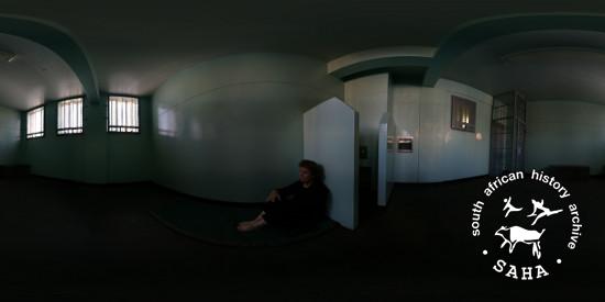 This colour photograph showing a panoramic view of Barbara Hogan in a cell at the Johannesburg Central Police Station (previously known as John Vorster Square) was taken by Craig Matthew of DOXA for the Sunday Times Heritage Project (STHP) - a joint project between SAHA and the Sunday Times, 2007. Included in "Between Life and Death: Stories from John Vorster Square" - a DVD produced as part of this project, 2007 and the SAHA online exhibition - 'Between Life and Death: Stories from John Vorster Square', 2012. |