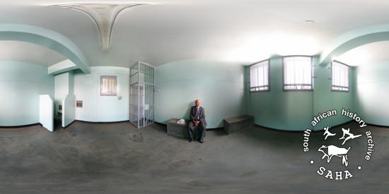 This colour photograph showing a panoramic view of Dr Kantilal Naik in a cell at the Johannesburg Central Police Station (previously known as John Vorster Square) was taken by Craig Matthew of DOXA for the Sunday Times Heritage Project (STHP) - a joint project between SAHA and the Sunday Times, 2007. Included in "Between Life and Death: Stories from John Vorster Square" - a DVD produced as part of this project, 2007 and the SAHA online exhibition - 'Between Life and Death: Stories from John Vorster Square', 2012. |