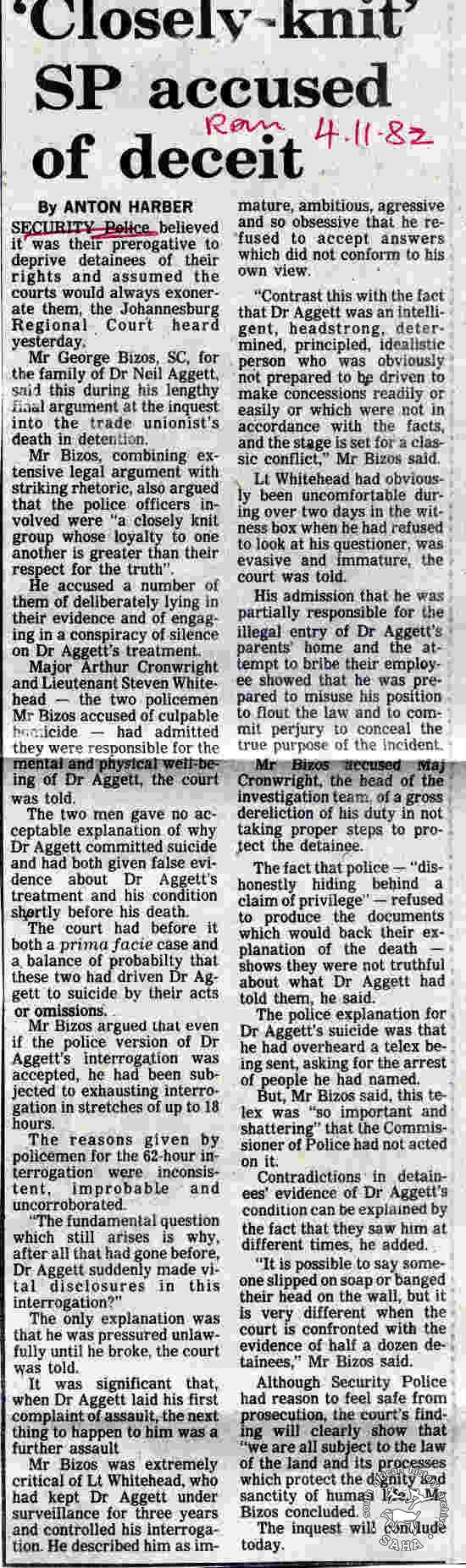 ► D7.3.5.5.7_19821104RDM :: 'Closely knit' SP accused of deceit