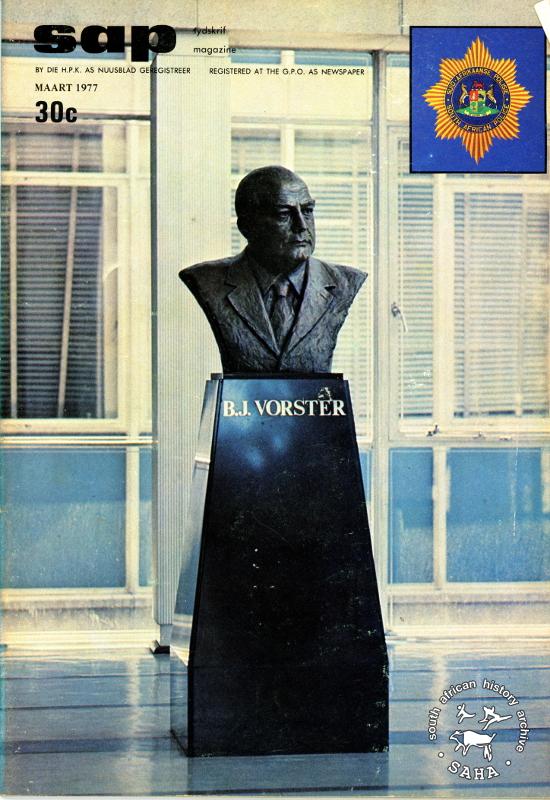 ► D7.6.3 :: The bronze bust of B.J. Vorster on the cover of the SAP magazine of March 1977