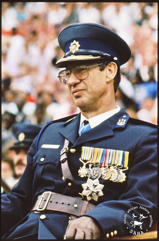 C07.01.08 :: Former police commissioner General Johann van der Merwe at a South African Police (SAP) ceremony