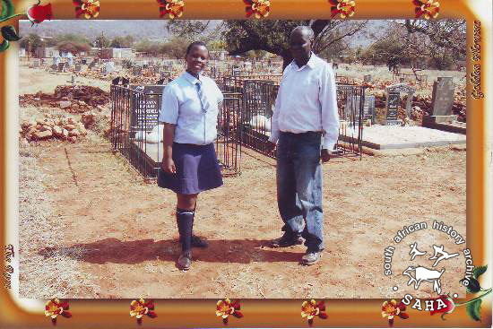 ► A2.8.1.5_2 :: Photograph of learner, Z.W. Ndumo, and interviewee, Moleko Shadrack Mahashoa, visiting the local cemetery.