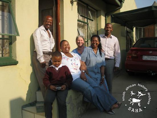 This colour photograph of Gille de Vlieg with Tembisa activist Tshepo Mphuthi and his family at their home was taken by Mmatjatji Malabela on 9 September 2010 for the SAHA project "Voices from Below: an oral and photographic community history of Tembisa".