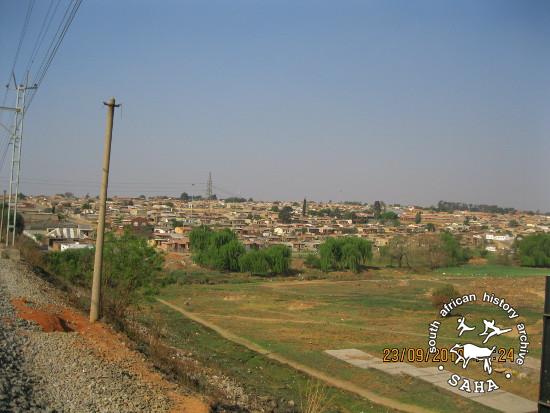 This colour photograph of a view of Tembisa from Lerala Station was taken by Lucky Zimba on 9 September 2010 for the SAHA project "Voices from Below: an oral and photographic community history of Tembisa".
