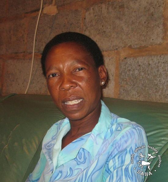 This colour photograph of Rebecca (Fosi) Sibanyoni was taken by Mmatjatji Malabela on 29 November 2010 during her and Tshepo Moloi's interview with Rebecca (Fosi) Sibanyoni as part of the SAHA project "Voices from Below: an oral and photographic community history of Tembisa".