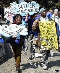 Richard 'Briggs' Mokolo marching with placard in support of water struggles, 2003 |