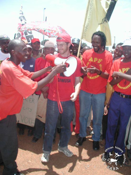 APF activists in action during a march in support of water struggles in Soweto, 2004 |