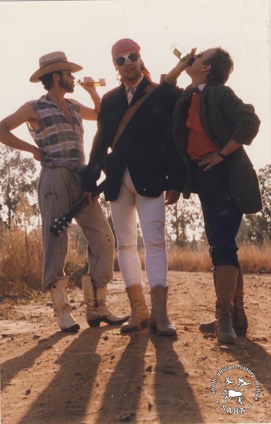This is a colour photograph of Tighthead Fourie and Loose Forwards; photographer and date unknown. Digitised by the South African History Archive (SAHA) in 2014. Included in the SAHA physical and/or virtual exhibitions 'What you won't hear on the radio', developed to mark the 30th birthday of Shifty Records and the 25th anniversary of the Voƫlvry tour. |