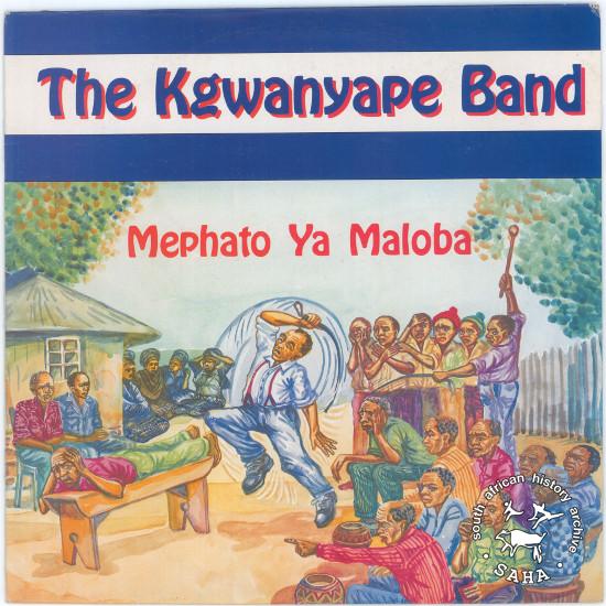 This is the front cover of the Shifty Records LP release 'Mephato ya Maloba' by the Kgwanyape Band in 1990. The cover design is by the Coetzee's and the cover painting is by Mzwakhe Mbuli. Digitised by Specialised Archival Solutions in 2014. Included in the SAHA physical and virtual exhibitions 'What you won't hear on the radio', developed to mark the 30th birthday of Shifty Records and the 25th anniversary of the Voƫlvry tour. |