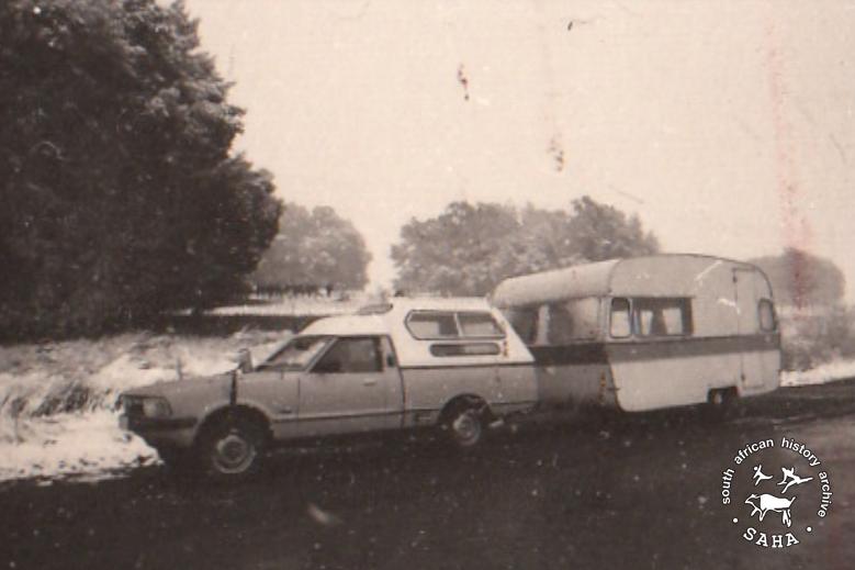 This is a black and white photograph of the Shifty Mobile Studio hitched to a Ford V6 truck by Joelle Chesselet, 1984. The photograph, derived from a contact sheet was digitised by Joelle Chesselet in 2014. Included in the SAHA physical and/or virtual exhibitions 'What you won't hear on the radio', developed to mark the 30th birthday of Shifty Records and the 25th anniversary of the Voƫlvry tour. |