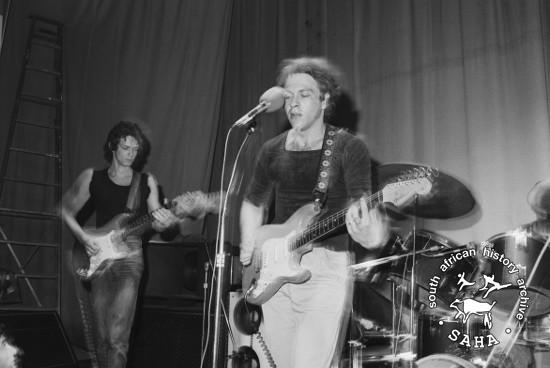 This is a black and white photograph of Lloyd Ross playing with Ivan Kadey and the band National Wake by Barry White, circa 1981. A high resolution digital image was donated by Barry White for SAHA's Shifty Records Legacy Archive Project. Included in the SAHA physical and/or virtual exhibitions 'What you won't hear on the radio', developed to mark the 30th birthday of Shifty Records and the 25th anniversary of the Voƫlvry tour. |