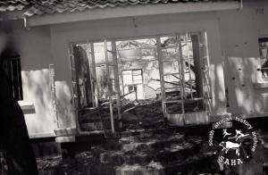 Photographs showing the damage caused by these assaults appear with great frequency in the Nkobi collection. Most relate to the Freedom Camp attack, and some to the attack on Nkomo's house, with only a few apparently showing the damage to Works Camp not far from Victory Camp. Joshua Nkomo's house was the subject of a direct night assault by a ground force using land rovers, and was simultaneously bombed from the air.