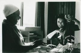 This black and white photograph of Ruth First with Winnie Mandela was taken by Mary Benson for the International Defence and Aid Fund (IDAF). This photograph was digitised by Africa Media Online (AMO) in 2009. Included in SAHA exhibition kit and virtual exhibition, titled 'Women hold up half the sky: commemorating women in the struggle'. |
